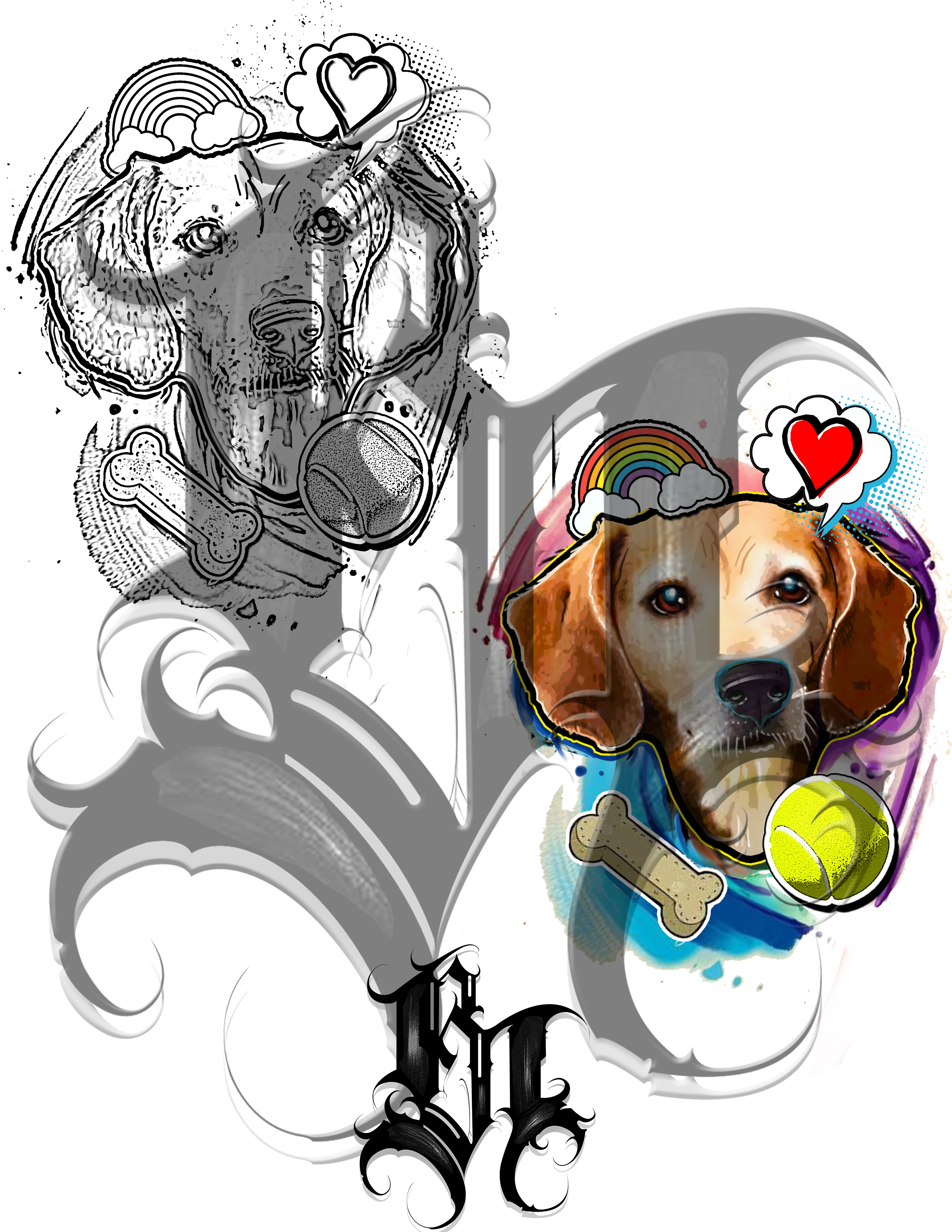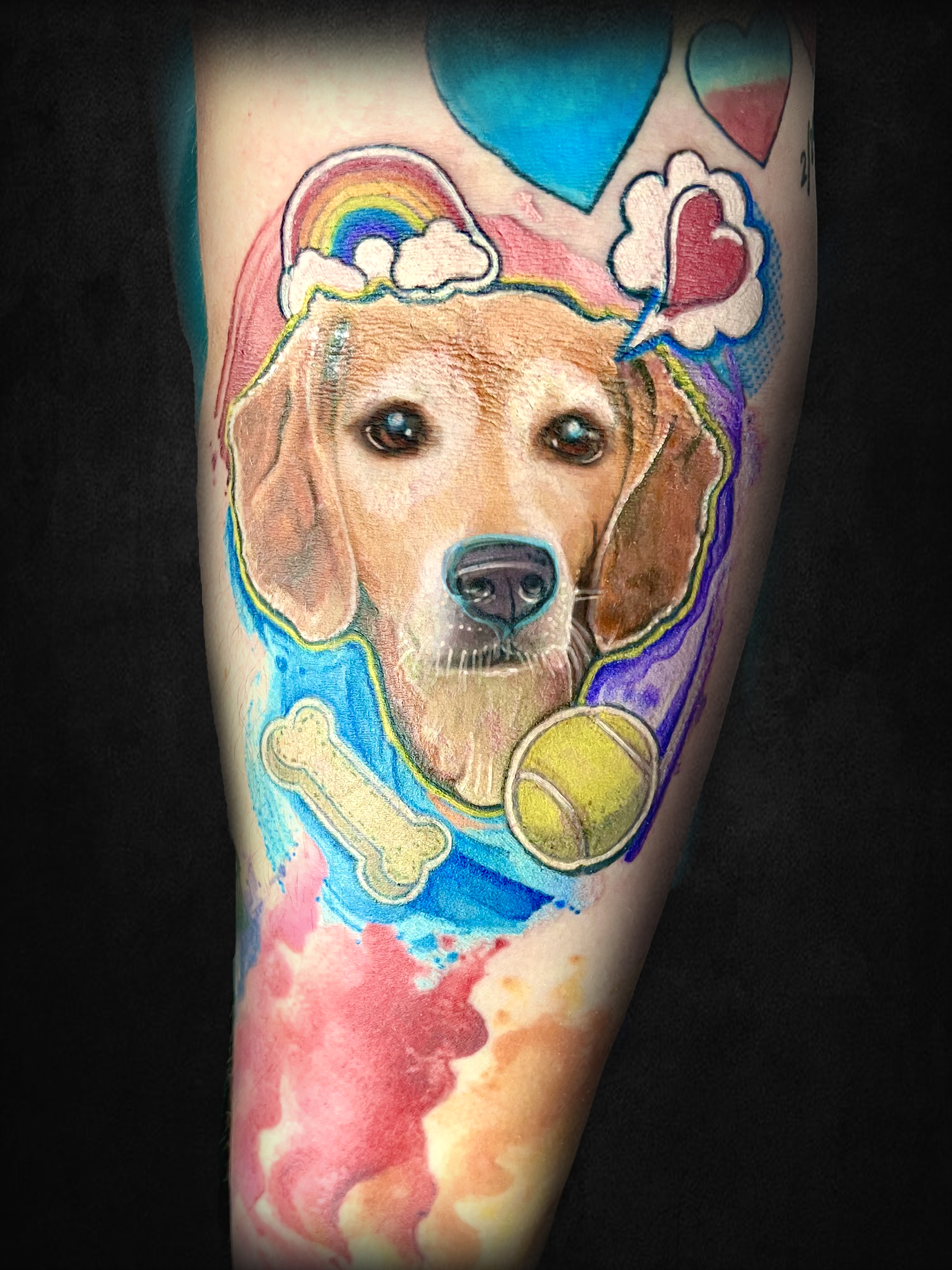 Dog Portrait with Pop Art Elements. Color. On Clients Forearm.