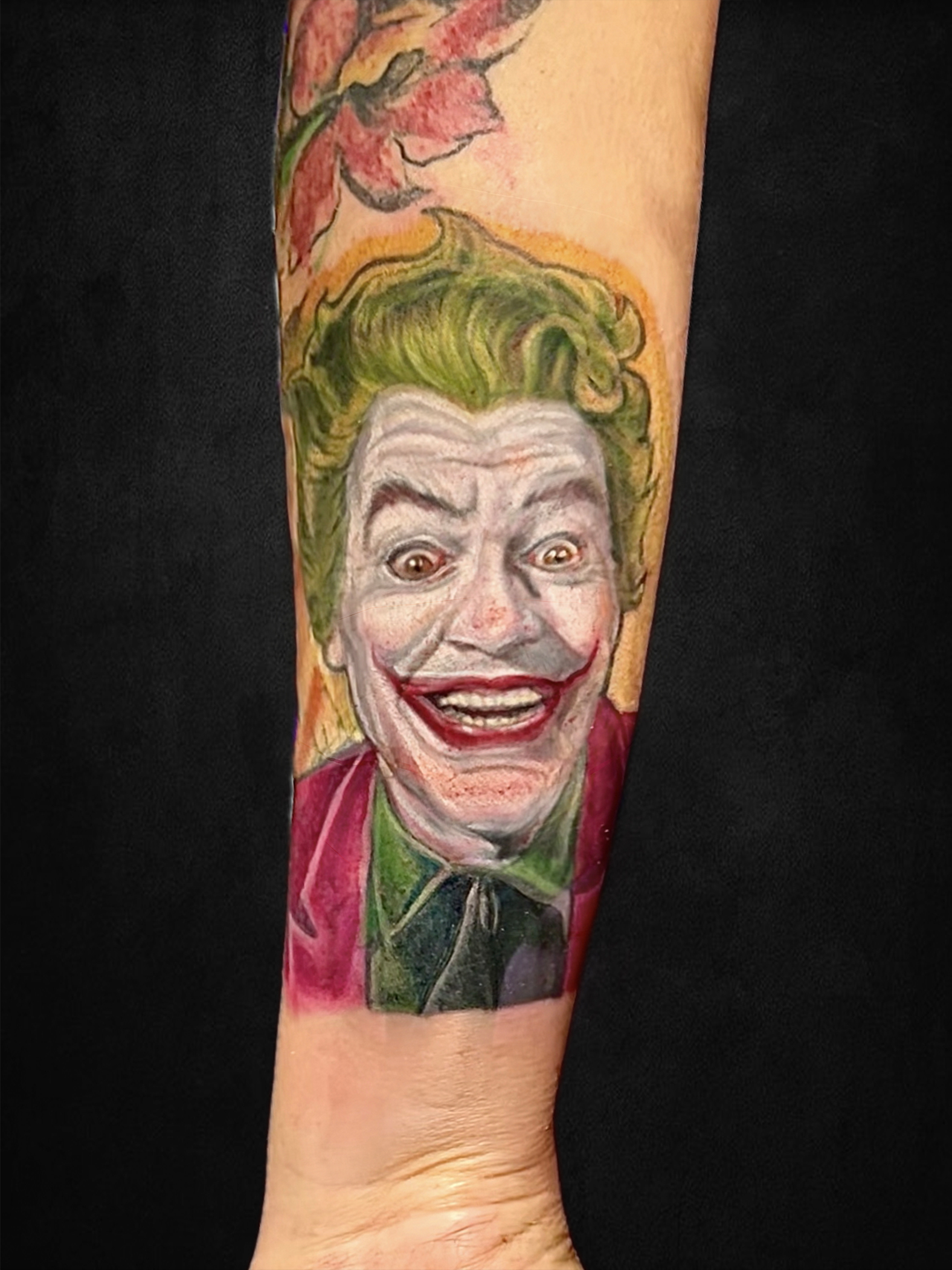 Cesar Romero Joker Portrait. Color. On Clients Arm.