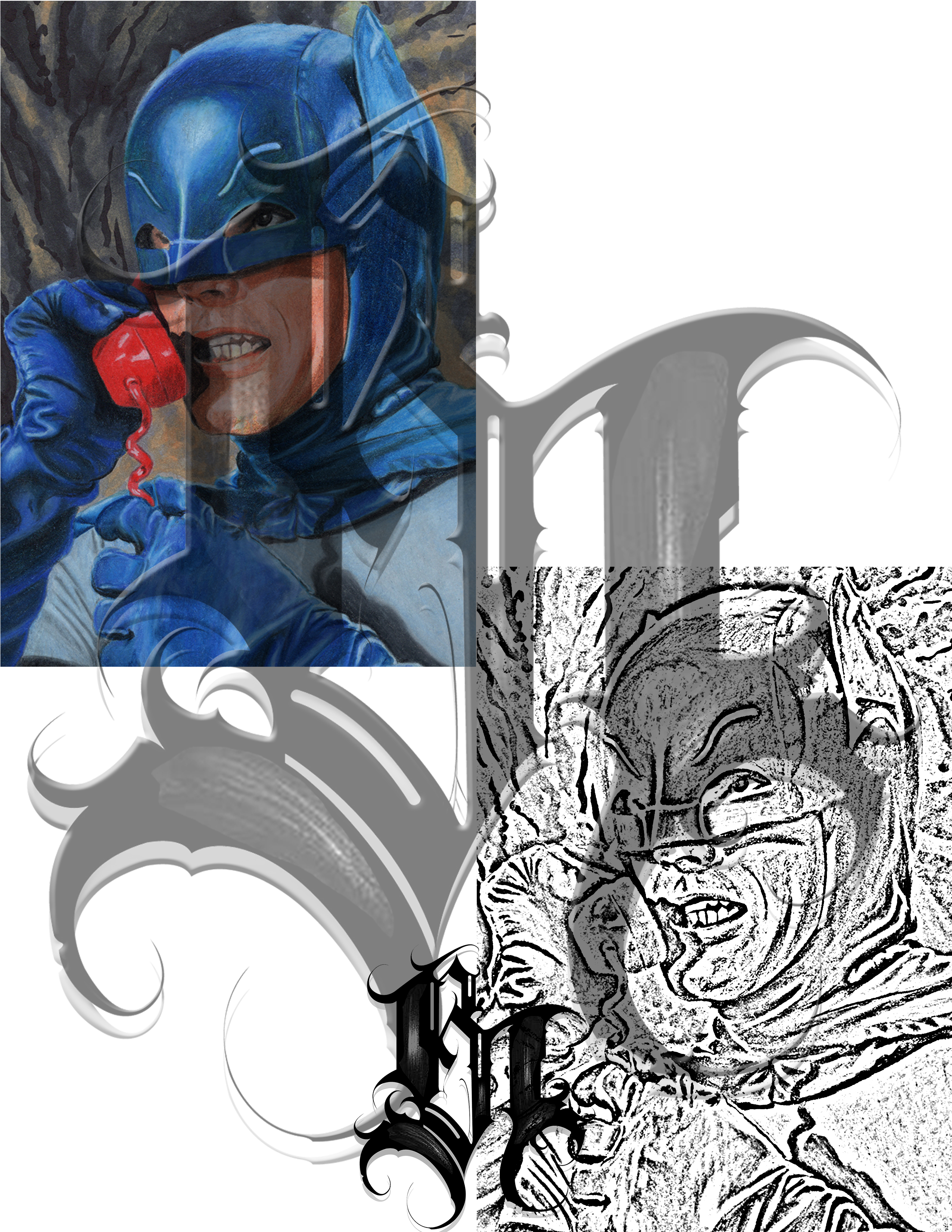 Adam West Batman Portrait. Color. On Clients Arm.